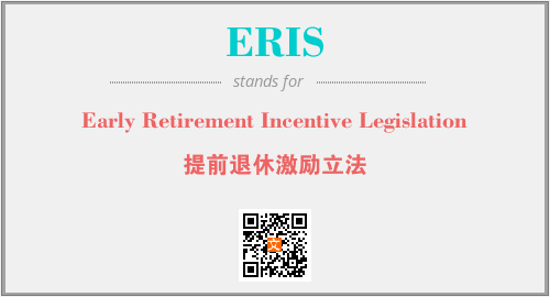 上述内容是“Early Retirement Incentive Legislation”作为“ERIS”的缩写,解释为“提前退休激励立法”时的信息,以及英文缩略词ERIS所代表的英文单词,其对应的中文拼音、详细解释以及在英文中的流行度和相关分类、应用领域及应用示例等。