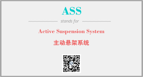 英文缩略词“ASS”经常作为“Active Suspension System”的英文缩写来使用,中文表示:“主动悬架系统”。本文将详细介绍英文缩写词ASS所代表英文单词,其对应的中文拼音、详细解释以及在英语中的流行度。此外,还有关于缩略词ASS的分类、应用领域及相关应用示例等。