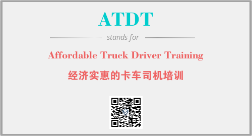英文缩略词“ATDT”经常作为“Affordable Truck Driver Training”的英文缩写来使用,中文表示:“经济实惠的卡车司机培训”。本文将详细介绍英文缩写词ATDT所代表英文单词,其对应的中文拼音、详细解释以及在英语中的流行度。此外,还有关于缩略词ATDT的分类、应用领域及相关应用示例等。