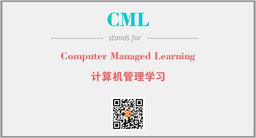 英文缩略词“CML”经常作为“Computer Managed Learning”的英文缩写来使用,中文表示:“计算机管理学习”。本文将详细介绍英文缩写词CML所代表英文单词,其对应的中文拼音、详细解释以及在英语中的流行度。此外,还有关于缩略词CML的分类、应用领域及相关应用示例等。