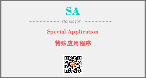 英文缩略词“SA”经常作为“Special Application”的英文缩写来使用,中文表示:“特殊应用程序”。本文将详细介绍英文缩写词SA所代表英文单词,其对应的中文拼音、详细解释以及在英语中的流行度。此外,还有关于缩略词SA的分类、应用领域及相关应用示例等。