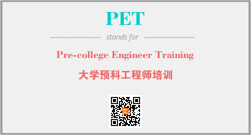 以上为Pre-college Engineer Training英文缩略词PET的中文解释,以及该英文缩写在英语的流行度、分类和应用领域方面的信息。