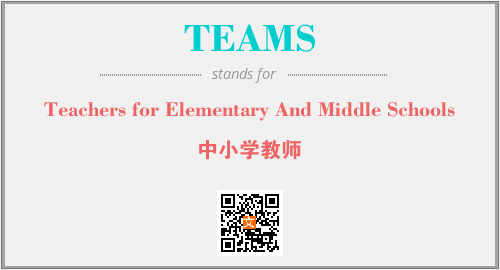 英文缩略词“TEAMS”经常作为“Teachers for Elementary And Middle Schools”的英文缩写来使用,中文表示:“中小学教师”。本文将详细介绍英文缩写词TEAMS所代表英文单词,其对应的中文拼音、详细解释以及在英语中的流行度。此外,还有关于缩略词TEAMS的分类、应用领域及相关应用示例等。