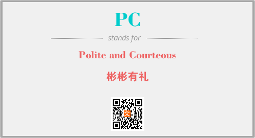英文缩略词“PC”经常作为“Polite and Courteous”的英文缩写来使用,中文表示:“彬彬有礼”。本文将详细介绍英文缩写词PC所代表英文单词,其对应的中文拼音、详细解释以及在英语中的流行度。此外,还有关于缩略词PC的分类、应用领域及相关应用示例等。