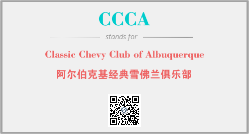 以上为Classic Chevy Club of Albuquerque英文缩略词CCCA的中文解释,以及该英文缩写在英语的流行度、分类和应用领域方面的信息。