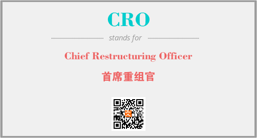 以上为Chief Restructuring Officer英文缩略词CRO的中文解释,以及该英文缩写在英语的流行度、分类和应用领域方面的信息。