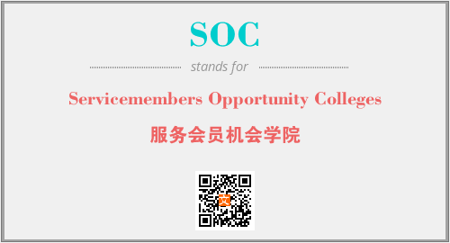 英文缩略词“SOC”经常作为“Servicemembers Opportunity Colleges”的英文缩写来使用,中文表示:“服务会员机会学院”。本文将详细介绍英文缩写词SOC所代表英文单词,其对应的中文拼音、详细解释以及在英语中的流行度。此外,还有关于缩略词SOC的分类、应用领域及相关应用示例等。