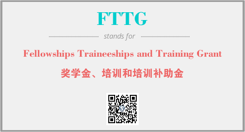 英文缩略词“FTTG”经常作为“Fellowships Traineeships and Training Grant”的英文缩写来使用,中文表示:“奖学金、培训和培训补助金”。本文将详细介绍英文缩写词FTTG所代表英文单词,其对应的中文拼音、详细解释以及在英语中的流行度。此外,还有关于缩略词FTTG的分类、应用领域及相关应用示例等。
