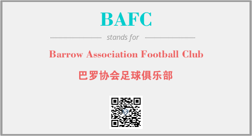 上述内容是“Barrow Association Football Club”作为“BAFC”的缩写,解释为“巴罗协会足球俱乐部”时的信息,以及英文缩略词BAFC所代表的英文单词,其对应的中文拼音、详细解释以及在英文中的流行度和相关分类、应用领域及应用示例等。