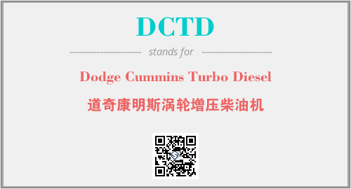 英文缩略词“DCTD”经常作为“Dodge Cummins Turbo Diesel”的英文缩写来使用,中文表示:“道奇康明斯涡轮增压柴油机”。本文将详细介绍英文缩写词DCTD所代表英文单词,其对应的中文拼音、详细解释以及在英语中的流行度。此外,还有关于缩略词DCTD的分类、应用领域及相关应用示例等。