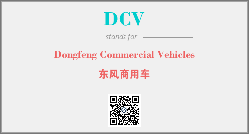 英文缩略词“DCV”经常作为“Dongfeng Commercial Vehicles”的英文缩写来使用,中文表示:“东风商用车”。本文将详细介绍英文缩写词DCV所代表英文单词,其对应的中文拼音、详细解释以及在英语中的流行度。此外,还有关于缩略词DCV的分类、应用领域及相关应用示例等。