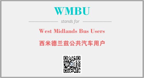 上述内容是“West Midlands Bus Users”作为“WMBU”的缩写,解释为“西米德兰兹公共汽车用户”时的信息,以及英文缩略词WMBU所代表的英文单词,其对应的中文拼音、详细解释以及在英文中的流行度和相关分类、应用领域及应用示例等。