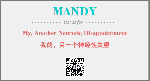 以上为My, Another Neurotic Disappointment英文缩略词MANDY的中文解释,以及该英文缩写在英语的流行度、分类和应用领域方面的信息。