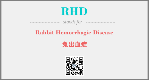 上述内容是“Rabbit Hemorrhagic Disease”作为“RHD”的缩写,解释为“兔出血症”时的信息,以及英文缩略词RHD所代表的英文单词,其对应的中文拼音、详细解释以及在英文中的流行度和相关分类、应用领域及应用示例等。