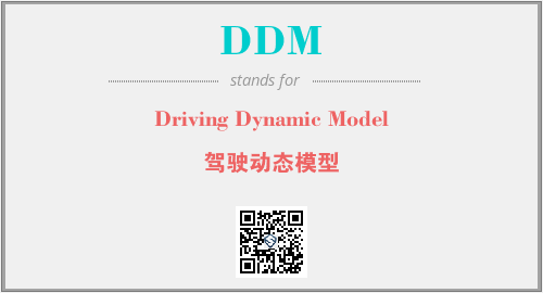 英文缩略词“DDM”经常作为“Driving Dynamic Model”的英文缩写来使用,中文表示:“驾驶动态模型”。本文将详细介绍英文缩写词DDM所代表英文单词,其对应的中文拼音、详细解释以及在英语中的流行度。此外,还有关于缩略词DDM的分类、应用领域及相关应用示例等。