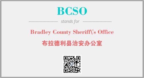 上述内容是“Bradley County Sheriff\'s Office”作为“BCSO”的缩写,解释为“布拉德利县治安办公室”时的信息,以及英文缩略词BCSO所代表的英文单词,其对应的中文拼音、详细解释以及在英文中的流行度和相关分类、应用领域及应用示例等。