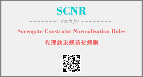 英文缩略词“SCNR”经常作为“Surrogate Constraint Normalization Rules”的英文缩写来使用,中文表示:“代理约束规范化规则”。本文将详细介绍英文缩写词SCNR所代表英文单词,其对应的中文拼音、详细解释以及在英语中的流行度。此外,还有关于缩略词SCNR的分类、应用领域及相关应用示例等。