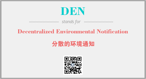 上述内容是“Decentralized Environmental Notification”作为“DEN”的缩写,解释为“分散的环境通知”时的信息,以及英文缩略词DEN所代表的英文单词,其对应的中文拼音、详细解释以及在英文中的流行度和相关分类、应用领域及应用示例等。