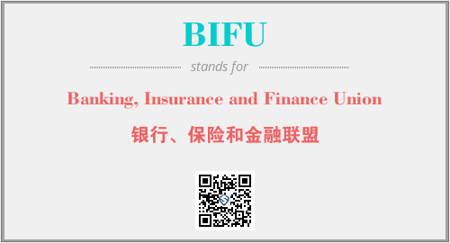上述内容是“Banking, Insurance and Finance Union”作为“BIFU”的缩写,解释为“银行、保险和金融联盟”时的信息,以及英文缩略词BIFU所代表的英文单词,其对应的中文拼音、详细解释以及在英文中的流行度和相关分类、应用领域及应用示例等。