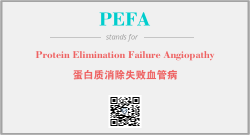 以上为Protein Elimination Failure Angiopathy英文缩略词PEFA的中文解释,以及该英文缩写在英语的流行度、分类和应用领域方面的信息。