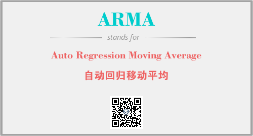 英文缩略词“ARMA”经常作为“Auto Regression Moving Average”的英文缩写来使用,中文表示:“自动回归移动平均”。本文将详细介绍英文缩写词ARMA所代表英文单词,其对应的中文拼音、详细解释以及在英语中的流行度。此外,还有关于缩略词ARMA的分类、应用领域及相关应用示例等。
