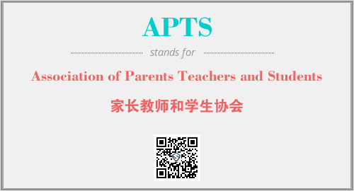 英文缩略词“APTS”经常作为“Association of Parents Teachers and Students”的英文缩写来使用,中文表示:“家长教师和学生协会”。本文将详细介绍英文缩写词APTS所代表英文单词,其对应的中文拼音、详细解释以及在英语中的流行度。此外,还有关于缩略词APTS的分类、应用领域及相关应用示例等。