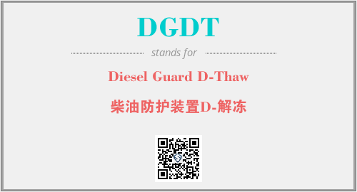 英文缩略词“DGDT”经常作为“Diesel Guard D-Thaw”的英文缩写来使用,中文表示:“柴油防护装置D-解冻”。本文将详细介绍英文缩写词DGDT所代表英文单词,其对应的中文拼音、详细解释以及在英语中的流行度。此外,还有关于缩略词DGDT的分类、应用领域及相关应用示例等。