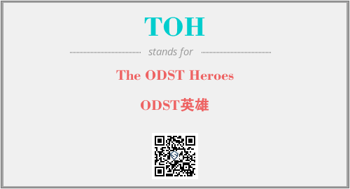 英文缩略词“TOH”经常作为“The ODST Heroes”的英文缩写来使用,中文表示:“ODST英雄”。本文将详细介绍英文缩写词TOH所代表英文单词,其对应的中文拼音、详细解释以及在英语中的流行度。此外,还有关于缩略词TOH的分类、应用领域及相关应用示例等。