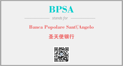 以上为Banca Popolare Sant\'Angelo英文缩略词BPSA的中文解释,以及该英文缩写在英语的流行度、分类和应用领域方面的信息。