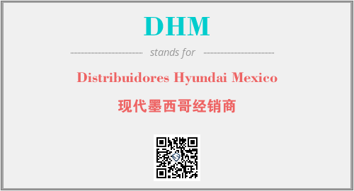 英文缩略词“DHM”经常作为“Distribuidores Hyundai Mexico”的英文缩写来使用,中文表示:“现代墨西哥经销商”。本文将详细介绍英文缩写词DHM所代表英文单词,其对应的中文拼音、详细解释以及在英语中的流行度。此外,还有关于缩略词DHM的分类、应用领域及相关应用示例等。