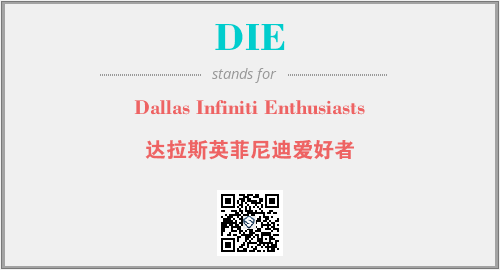 上述内容是“Dallas Infiniti Enthusiasts”作为“DIE”的缩写,解释为“达拉斯英菲尼迪爱好者”时的信息,以及英文缩略词DIE所代表的英文单词,其对应的中文拼音、详细解释以及在英文中的流行度和相关分类、应用领域及应用示例等。