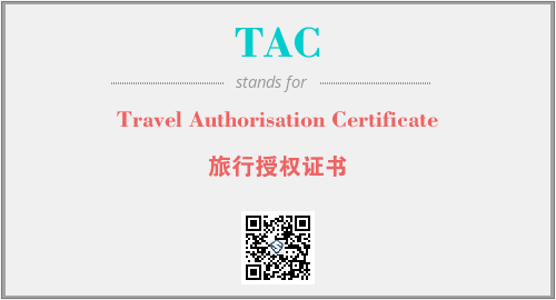 英文缩略词“TAC”经常作为“Travel Authorisation Certificate”的英文缩写来使用,中文表示:“旅行授权证书”。本文将详细介绍英文缩写词TAC所代表英文单词,其对应的中文拼音、详细解释以及在英语中的流行度。此外,还有关于缩略词TAC的分类、应用领域及相关应用示例等。