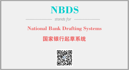 上述内容是“National Bank Drafting Systems”作为“NBDS”的缩写,解释为“国家银行起草系统”时的信息,以及英文缩略词NBDS所代表的英文单词,其对应的中文拼音、详细解释以及在英文中的流行度和相关分类、应用领域及应用示例等。