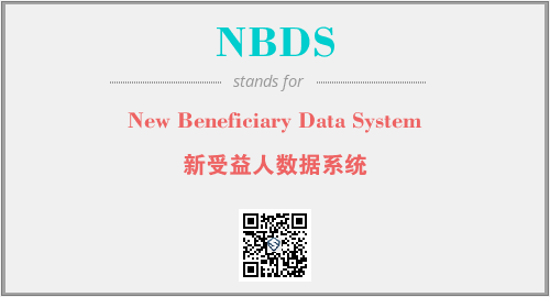 上述内容是“New Beneficiary Data System”作为“NBDS”的缩写,解释为“新受益人数据系统”时的信息,以及英文缩略词NBDS所代表的英文单词,其对应的中文拼音、详细解释以及在英文中的流行度和相关分类、应用领域及应用示例等。