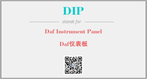 英文缩略词“DIP”经常作为“Daf Instrument Panel”的英文缩写来使用,中文表示:“Daf仪表板”。本文将详细介绍英文缩写词DIP所代表英文单词,其对应的中文拼音、详细解释以及在英语中的流行度。此外,还有关于缩略词DIP的分类、应用领域及相关应用示例等。