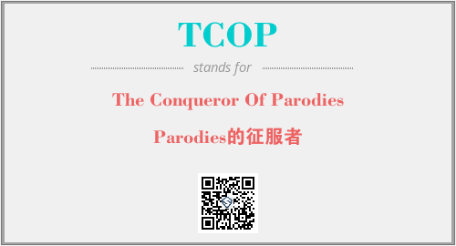 上述内容是“The Conqueror Of Parodies”作为“TCOP”的缩写,解释为“Parodies的征服者”时的信息,以及英文缩略词TCOP所代表的英文单词,其对应的中文拼音、详细解释以及在英文中的流行度和相关分类、应用领域及应用示例等。