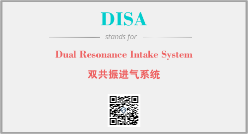 上述内容是“Dual Resonance Intake System”作为“DISA”的缩写,解释为“双共振进气系统”时的信息,以及英文缩略词DISA所代表的英文单词,其对应的中文拼音、详细解释以及在英文中的流行度和相关分类、应用领域及应用示例等。