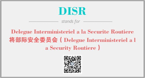 上述内容是“Delegue Interministeriel a la Securite Routiere”作为“DISR”的缩写,解释为“将部际安全委员会(Delegue Interministeriel a la Security Routiere)”时的信息,以及英文缩略词DISR所代表的英文单词,其对应的中文拼音、详细解释以及在英文中的流行度和相关分类、应用领域及应用示例等。