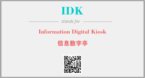 上述内容是“Information Digital Kiosk”作为“IDK”的缩写,解释为“信息数字亭”时的信息,以及英文缩略词IDK所代表的英文单词,其对应的中文拼音、详细解释以及在英文中的流行度和相关分类、应用领域及应用示例等。