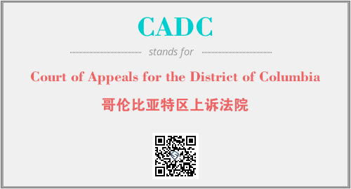 上述内容是“Court of Appeals for the District of Columbia”作为“CADC”的缩写,解释为“哥伦比亚特区上诉法院”时的信息,以及英文缩略词CADC所代表的英文单词,其对应的中文拼音、详细解释以及在英文中的流行度和相关分类、应用领域及应用示例等。