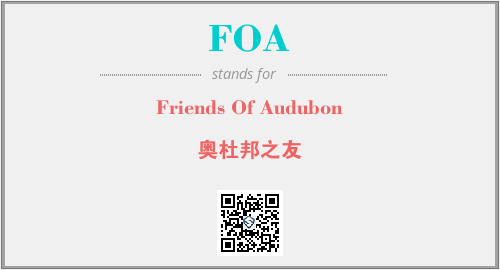 上述内容是“Friends Of Audubon”作为“FOA”的缩写,解释为“奥杜邦之友”时的信息,以及英文缩略词FOA所代表的英文单词,其对应的中文拼音、详细解释以及在英文中的流行度和相关分类、应用领域及应用示例等。