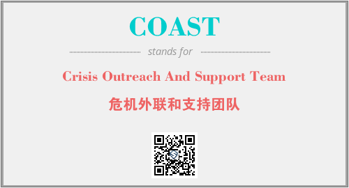 上述内容是“Crisis Outreach And Support Team”作为“COAST”的缩写,解释为“危机外联和支持团队”时的信息,以及英文缩略词COAST所代表的英文单词,其对应的中文拼音、详细解释以及在英文中的流行度和相关分类、应用领域及应用示例等。