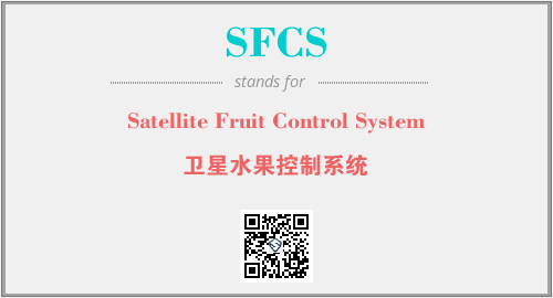 上述内容是“Satellite Fruit Control System”作为“SFCS”的缩写,解释为“卫星水果控制系统”时的信息,以及英文缩略词SFCS所代表的英文单词,其对应的中文拼音、详细解释以及在英文中的流行度和相关分类、应用领域及应用示例等。