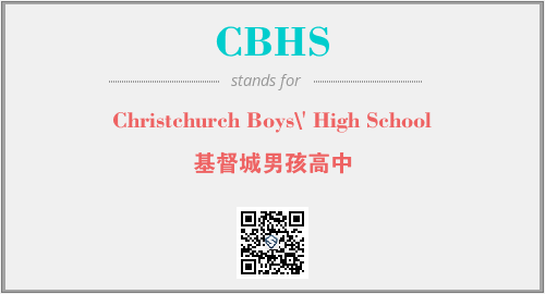 英文缩略词“CBHS”经常作为“Christchurch Boys\' High School”的英文缩写来使用,中文表示:“基督城男孩高中”。本文将详细介绍英文缩写词CBHS所代表英文单词,其对应的中文拼音、详细解释以及在英语中的流行度。此外,还有关于缩略词CBHS的分类、应用领域及相关应用示例等。