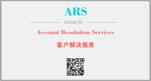 英文缩略词“ARS”经常作为“Account Resolution Services”的英文缩写来使用,中文表示:“客户解决服务”。本文将详细介绍英文缩写词ARS所代表英文单词,其对应的中文拼音、详细解释以及在英语中的流行度。此外,还有关于缩略词ARS的分类、应用领域及相关应用示例等。