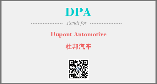 上述内容是“Dupont Automotive”作为“DPA”的缩写,解释为“杜邦汽车”时的信息,以及英文缩略词DPA所代表的英文单词,其对应的中文拼音、详细解释以及在英文中的流行度和相关分类、应用领域及应用示例等。