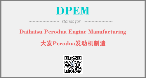 上述内容是“Daihatsu Perodua Engine Manufacturing”作为“DPEM”的缩写,解释为“大发Perodua发动机制造”时的信息,以及英文缩略词DPEM所代表的英文单词,其对应的中文拼音、详细解释以及在英文中的流行度和相关分类、应用领域及应用示例等。