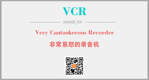 英文缩略词“VCR”经常作为“Very Cantankerous Recorder”的英文缩写来使用,中文表示:“非常易怒的录音机”。本文将详细介绍英文缩写词VCR所代表英文单词,其对应的中文拼音、详细解释以及在英语中的流行度。此外,还有关于缩略词VCR的分类、应用领域及相关应用示例等。