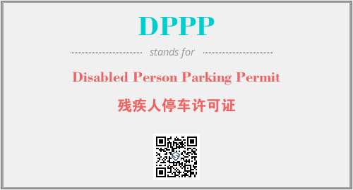 英文缩略词“DPPP”经常作为“Disabled Person Parking Permit”的英文缩写来使用,中文表示:“残疾人停车许可证”。本文将详细介绍英文缩写词DPPP所代表英文单词,其对应的中文拼音、详细解释以及在英语中的流行度。此外,还有关于缩略词DPPP的分类、应用领域及相关应用示例等。