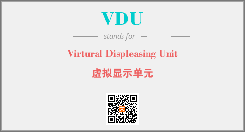 上述内容是“Virtural Displeasing Unit”作为“VDU”的缩写,解释为“虚拟显示单元”时的信息,以及英文缩略词VDU所代表的英文单词,其对应的中文拼音、详细解释以及在英文中的流行度和相关分类、应用领域及应用示例等。